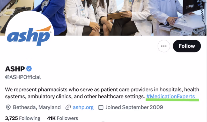 Hoton hoto na Twitter: Shafin Gida na ASHP na Twitter ya gaya wa duniya cewa su "#Masana Likita ne"
